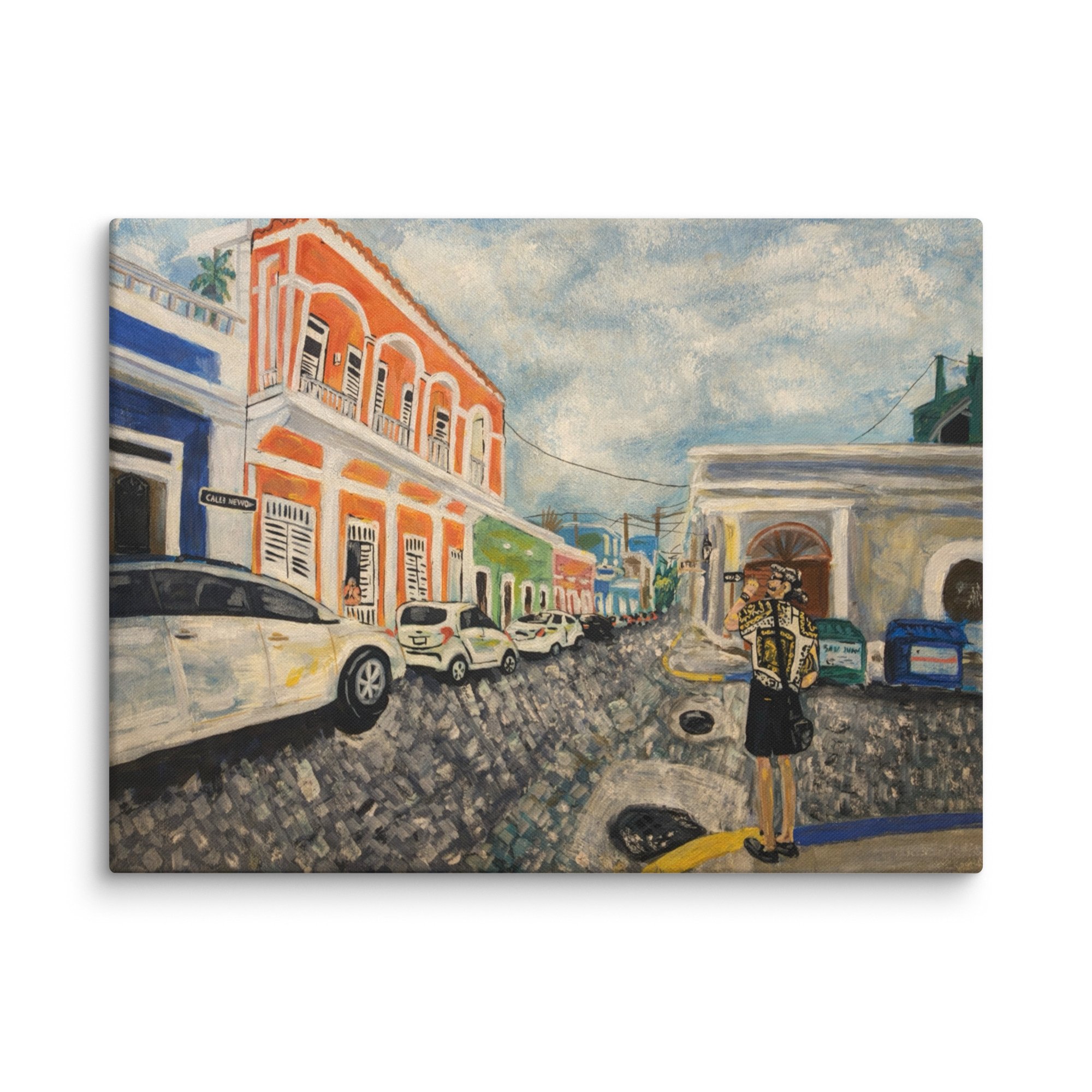 A Day in Old San Juan is a fine-art print reproduced from an original painting by Christian Bonez. The artwork captures a quiet moment along the historic cobblestone streets of Old San Juan, where colorful colonial buildings, textured surfaces, and soft daylight come together to reflect the city’s timeless character.